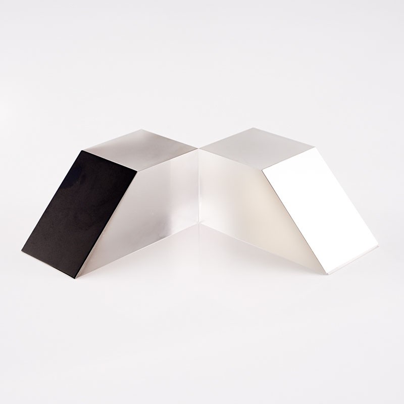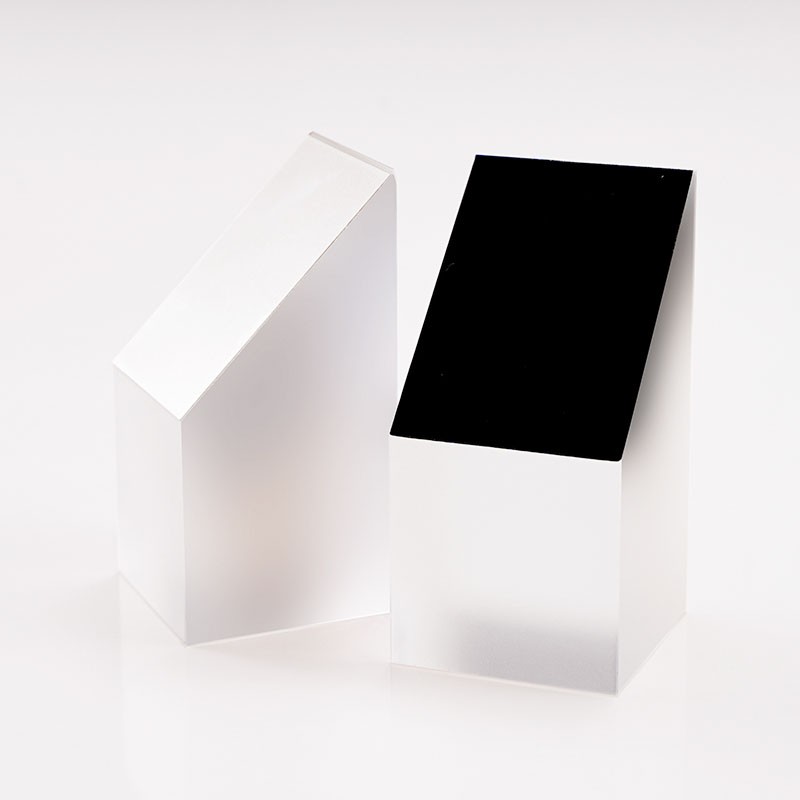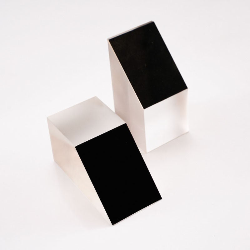 半五角棱鏡是一種特殊的光學(xué)元件,它的結(jié)構(gòu)特點(diǎn)是由五棱鏡對(duì)切而成,是光束定角度(通常為45°)轉(zhuǎn)向器件。半五角棱鏡具有許多優(yōu)點(diǎn),在應(yīng)用中,半五角棱鏡常被用于望遠(yuǎn)鏡等系統(tǒng)中,使光束實(shí)現(xiàn)固定的45°轉(zhuǎn)折。半五角棱鏡的反射面通常鍍有鋁膜,并加以黑漆保護(hù),而其入射面和出射面則鍍有MgF2(氟化鎂)增透膜,以增強(qiáng)其光學(xué)性能。